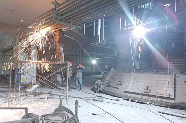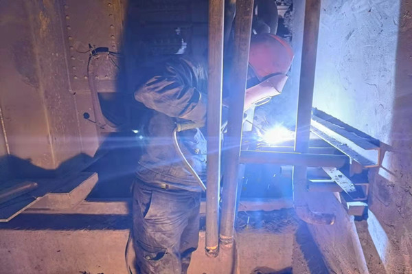 在檢修現(xiàn)場,我們的檢修工人身系安全帶,手拿焊鉗,蹲在狹小的空間,焊接水管,耗時耗力,唯有飛濺如麥穗的焊花展現(xiàn)著他們的顏色,魚骨似的焊縫是他們驕傲的成果。同時在檢修過程中也伴隨著灰塵飛揚(yáng)和各種安全隱患,但在我們檢修工人的臉上沒有看見沮喪的表情,看到的是檢修工人汗水浸透的后背,沒有休憩,只有投入;看到的是檢修工人一張張布滿灰塵的臉頰,沒有怨言,只有投入。在這里你可以看到那一個個無比堅(jiān)毅的目光,感受到他們內(nèi)心滿滿的自信和他們愛崗敬業(yè)、無私奉獻(xiàn)、不畏艱辛的精神;他們攜手共進(jìn)、分工合理、工作有序,只為創(chuàng)造安全的檢修環(huán)境;他們?yōu)樘崆巴瓿蓹z修任務(wù)加班到深夜,工作時間長、工作量大,不辭辛勞,沒有任何怨言,充分展現(xiàn)了“團(tuán)結(jié)、拼搏”的企業(yè)精神。
