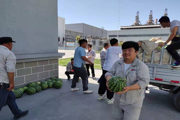 隨著氣溫不斷升高,公司電石冶煉、水泥回轉(zhuǎn)窯眾多崗位進(jìn)入了“燒烤”模式,為致敬高溫下的勞動(dòng)者,近日,公司領(lǐng)導(dǎo)組織了為一線人員送清涼活動(dòng)。大桶的綠豆湯、礦泉水、西瓜、藿香正氣水等防暑物品送到一線崗位工人手中,為烈日下奮戰(zhàn)在一線工作崗位上的勞動(dòng)者帶來了絲絲清涼和關(guān)懷。