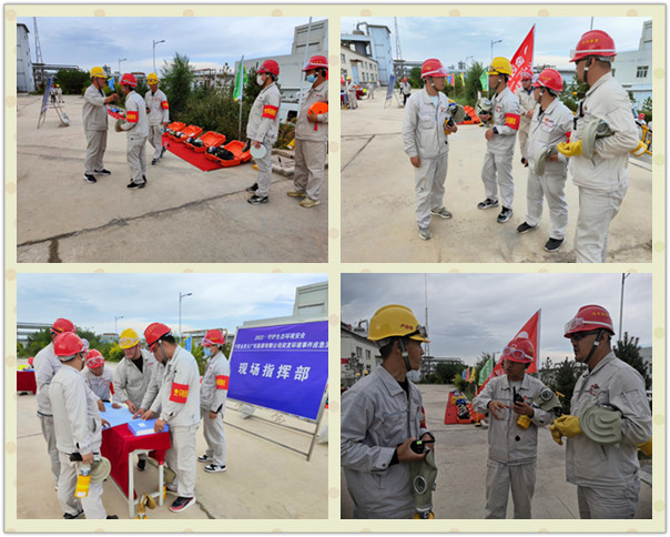 “報告總指揮,各演練部門準備完畢,氯乙烯球罐單體泄漏應(yīng)急演練是否開始。”“開始!”隨著演練總指揮、片區(qū)副總經(jīng)理、廣拓能源總經(jīng)理賈存富的一聲令下,應(yīng)急演練正式開始。”本次演練設(shè)定為一般突發(fā)事件應(yīng)急響應(yīng),演練內(nèi)容是:廣拓能源有限公司廢酸處理稀硫酸罐排污閥泄露,由于稀硫酸泄漏量較大,啟動突發(fā)應(yīng)急預(yù)案。主要演練現(xiàn)場警戒、人員撤離、筑壩攔截預(yù)防稀硫酸外溢、危險廢物收集。