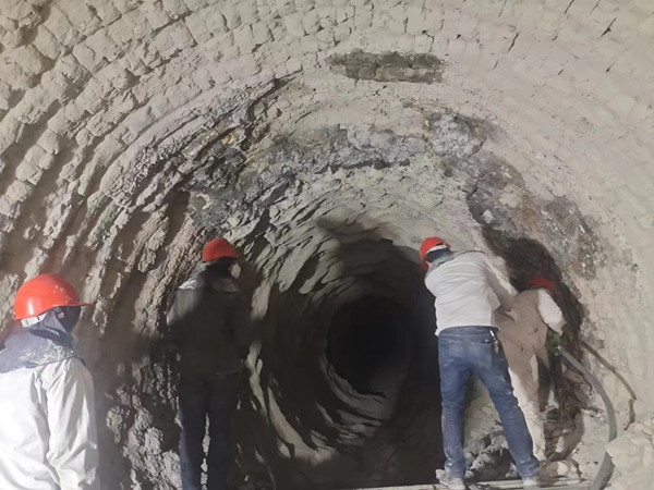 檢修窯內(nèi)工作項(xiàng)目中為避免搬窯磚過程中造成手中窯磚掉落砸傷人員腳的安全隱患,他們有序地排成兩排。